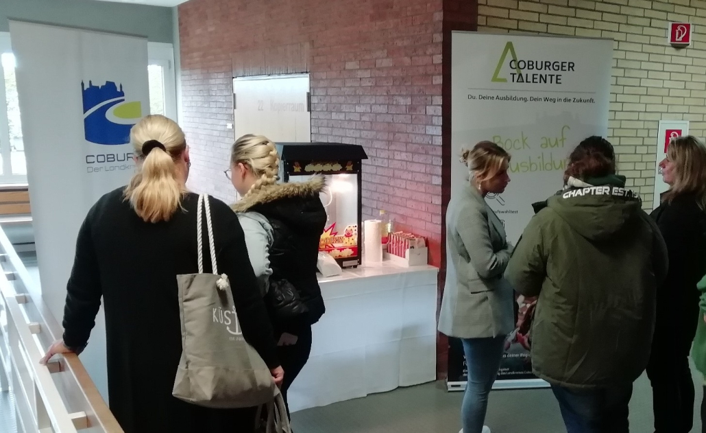 Am 21. Oktober öffnete die Handwerkskammer Coburg ihre Türen für die diesjährige Berufsmesse des Handwerks, und inmitten des regen Treibens präsentierten sich die „Coburger Talente“, die Ausbildungsplattform der Wirtschaftsförderung des Landkreises Coburg. Der verlockende Duft von frischem Popcorn umströmte den Stand und zog über 140 neugierige Besucherinnen und Besucher an, die sich auf interessante Gespräche rund um die Berufswahl einließen.
